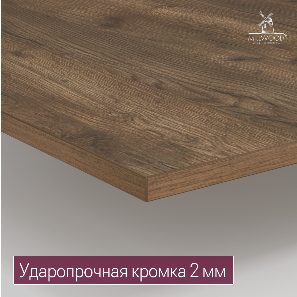 Изготовленная из высококачественной ЛДСП, столешница обладает ударопрочной кромкой, что защищает ее от повреждений и продлевает срок службы.