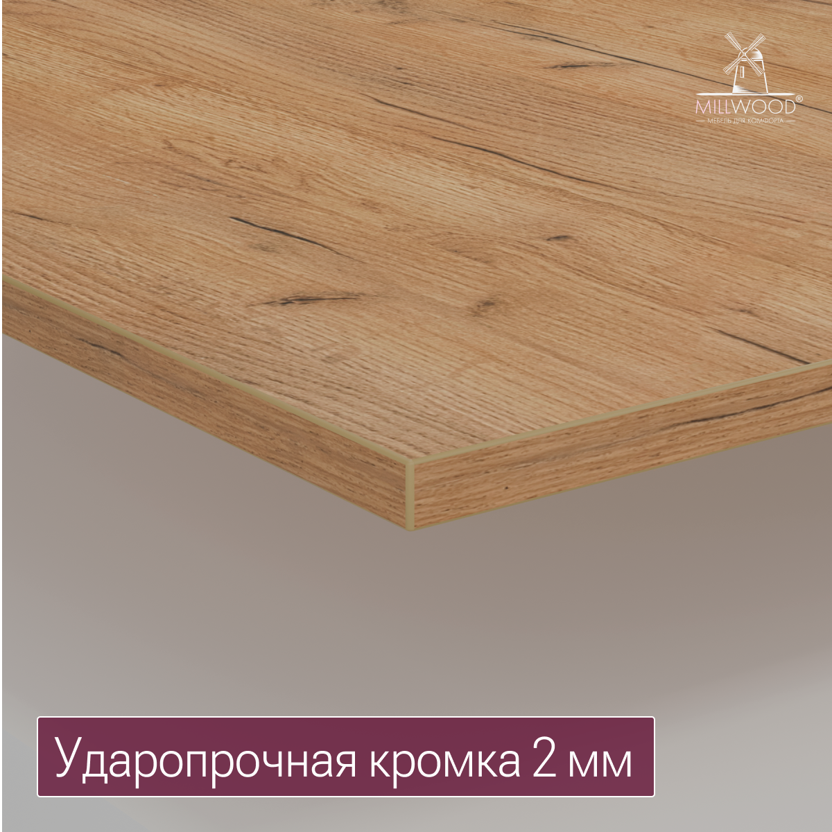 Изготовленная из высококачественной ЛДСП, столешница обладает ударопрочной кромкой, что защищает ее от повреждений и продлевает срок службы.