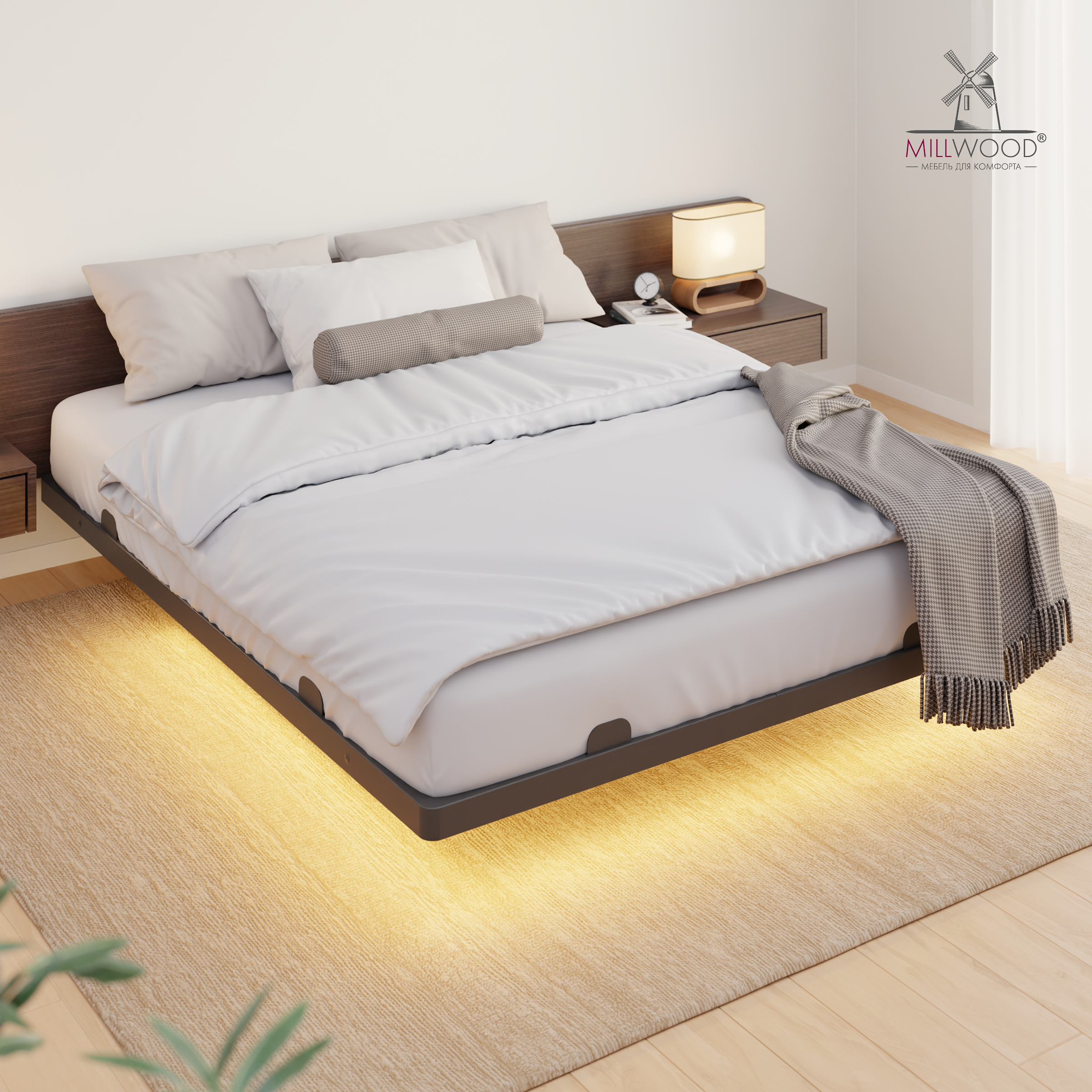 Кровать Millwood «Афина» — это безупречное сочетание современного дизайна, инновационных технологий и продуманного комфорта для вашего идеального сна.
