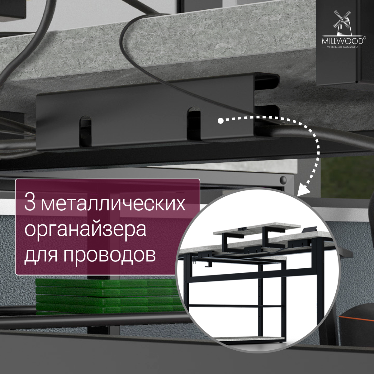 - 3 металлических органайзера для укладки проводов.