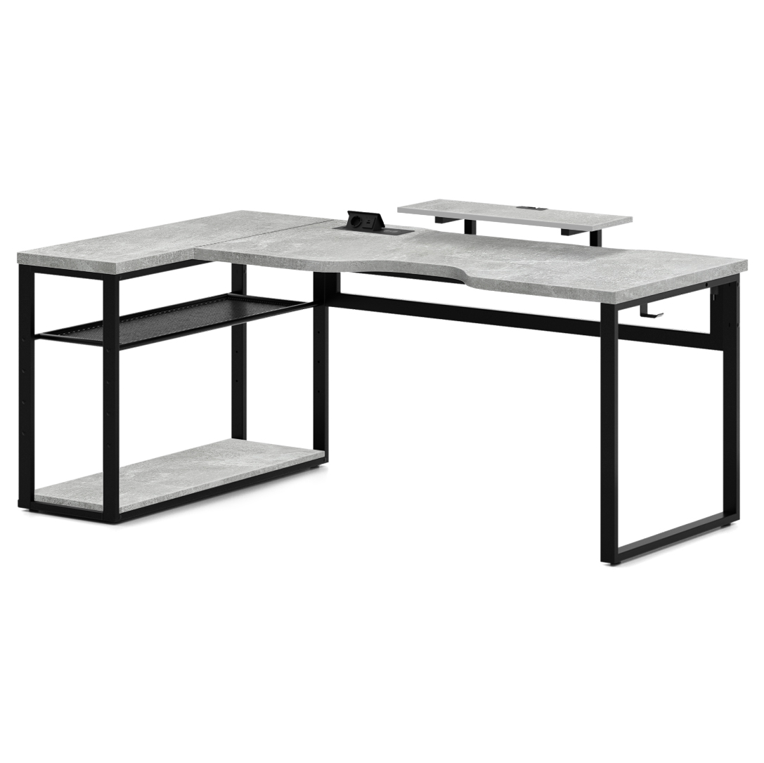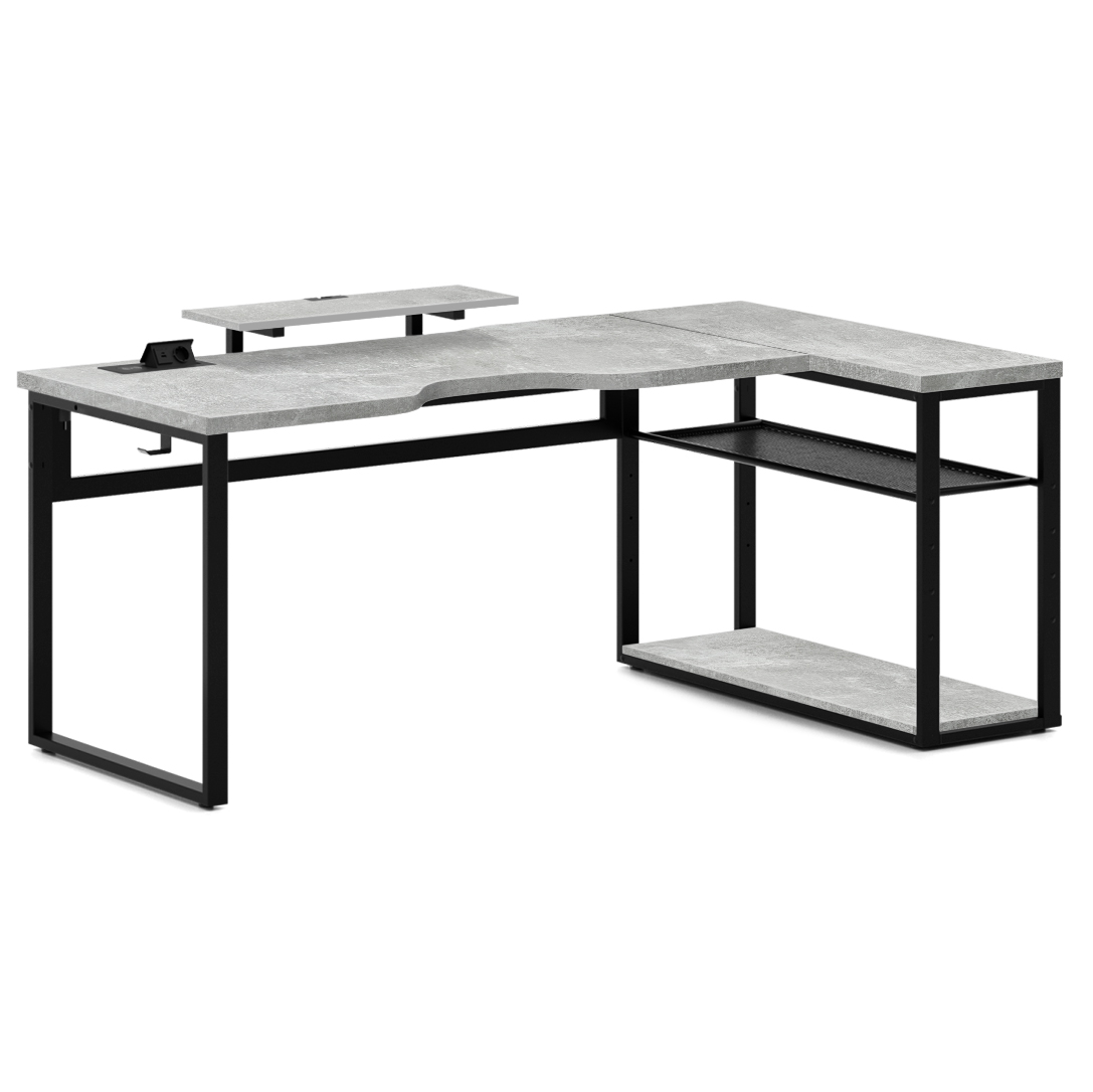 Угловой компьютерный стол 200х120 см с регулируемой полкой и подставкой для монитора.