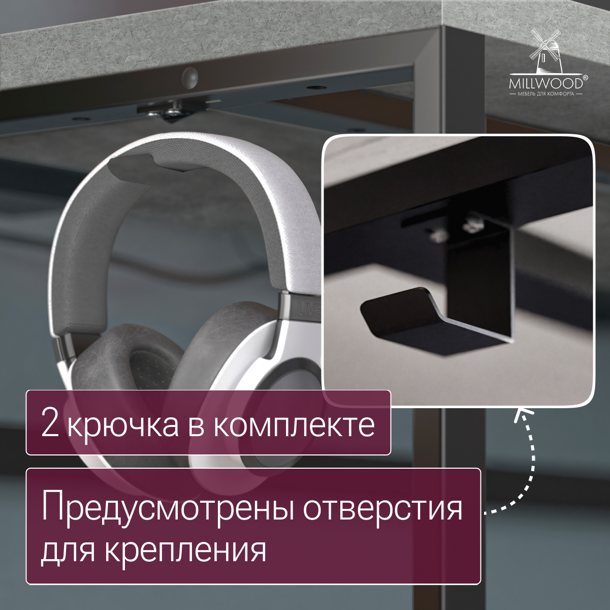 - 2 металлических держателя для наушников или рюкзаков. Устанавливаются в любом удобном для вас месте.