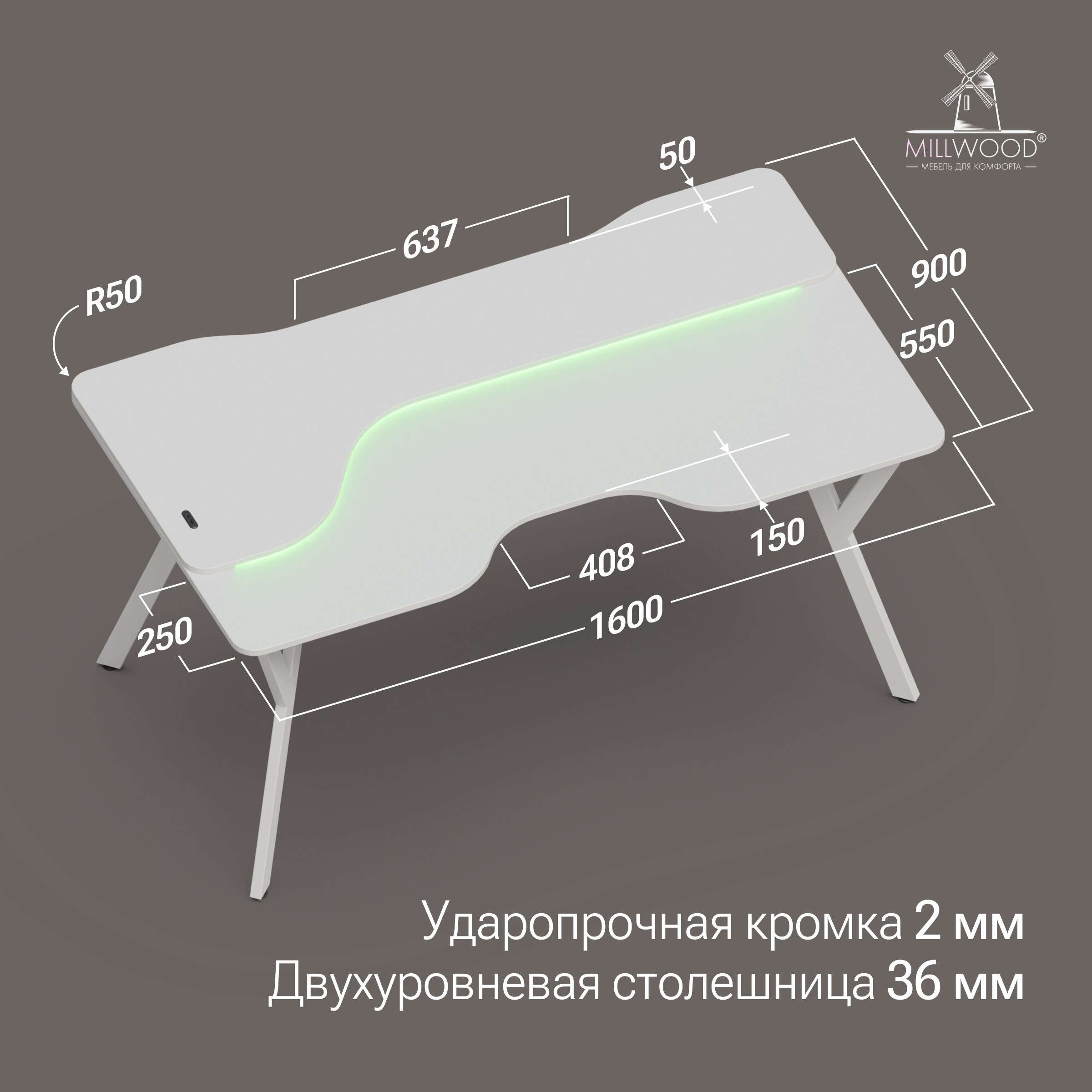 ◾ Усиленная кромка столешницы 2 мм защищает от сколов и повреждений.