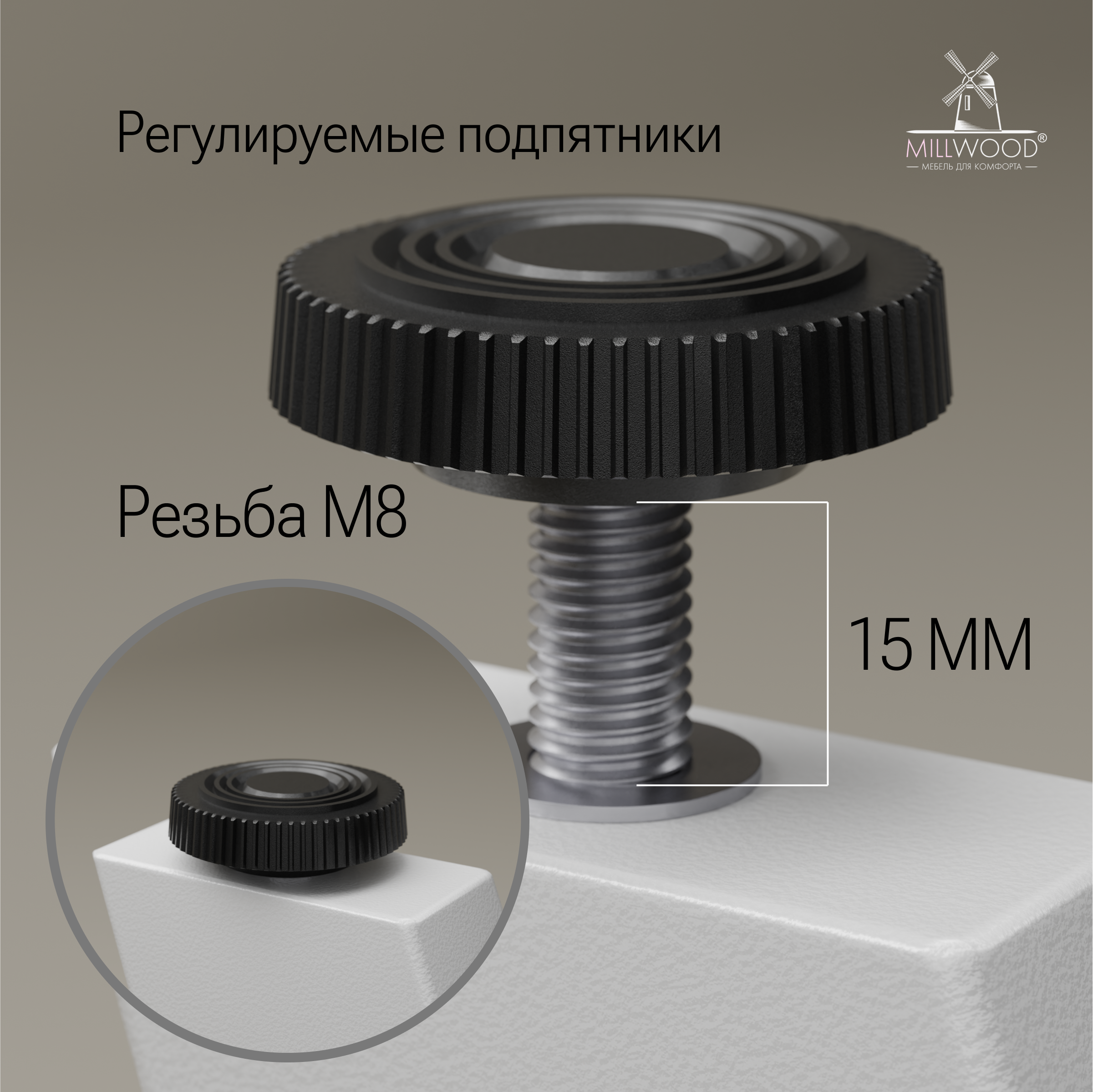 ◾ Регулируемые подпятники компенсируют неровности пола и обеспечивают стабильность.