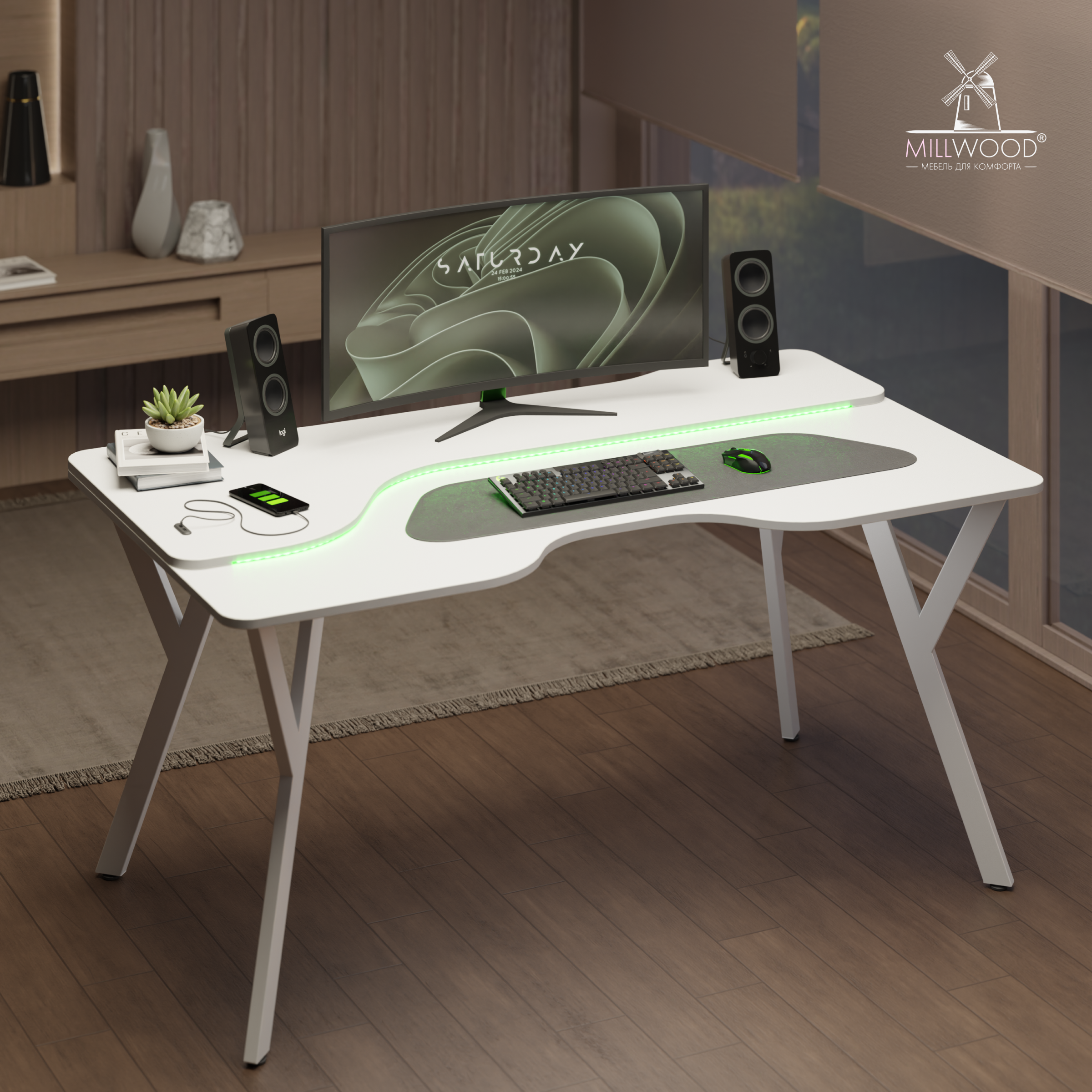 ◾ Столешница глубиной 90 см позволяет разместить ноутбук, монитор, документы и аксессуары — всё под рукой, без перегрузки.