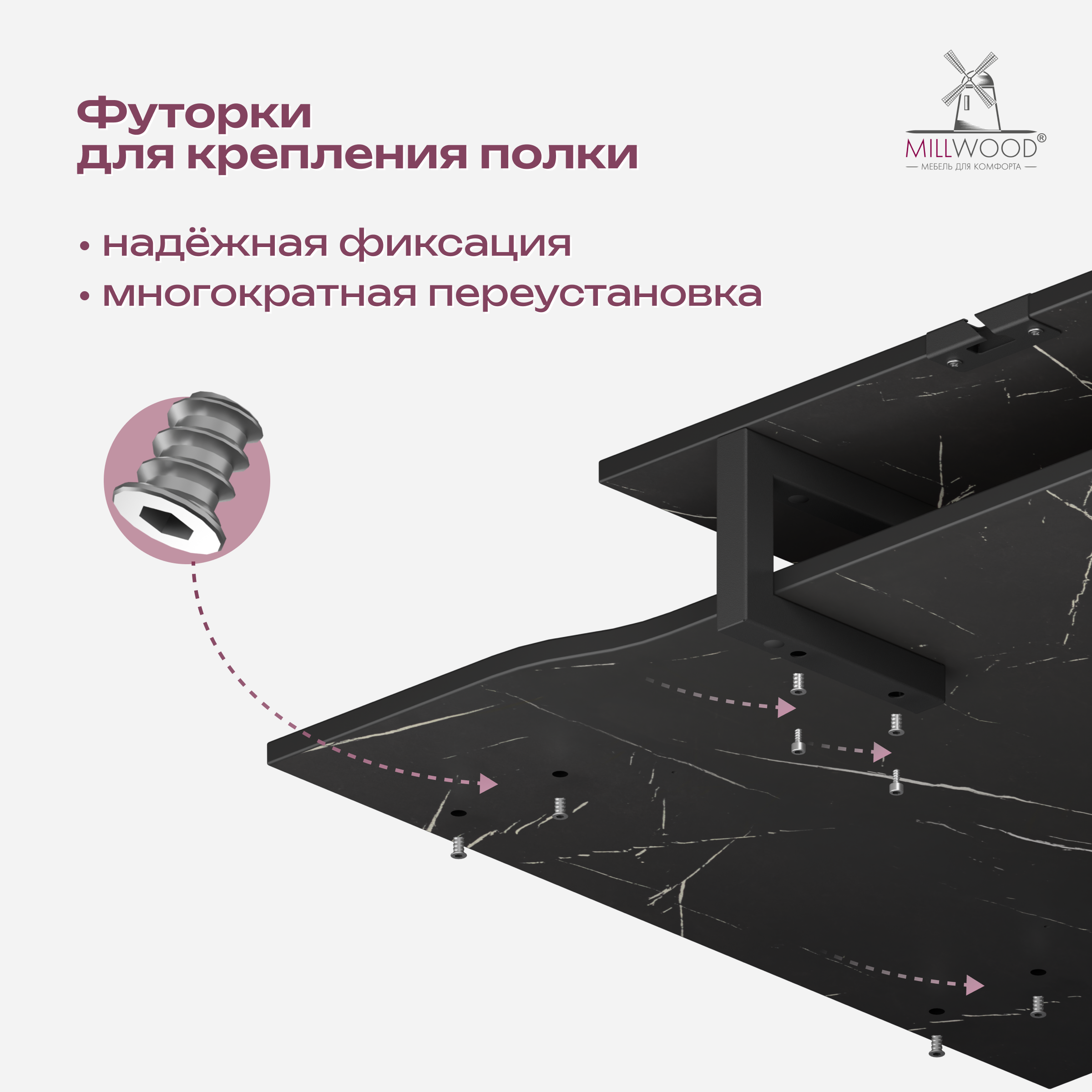 ◾ Футорки в столешнице — удобная сборка, а также повторная сборка без потери качества.