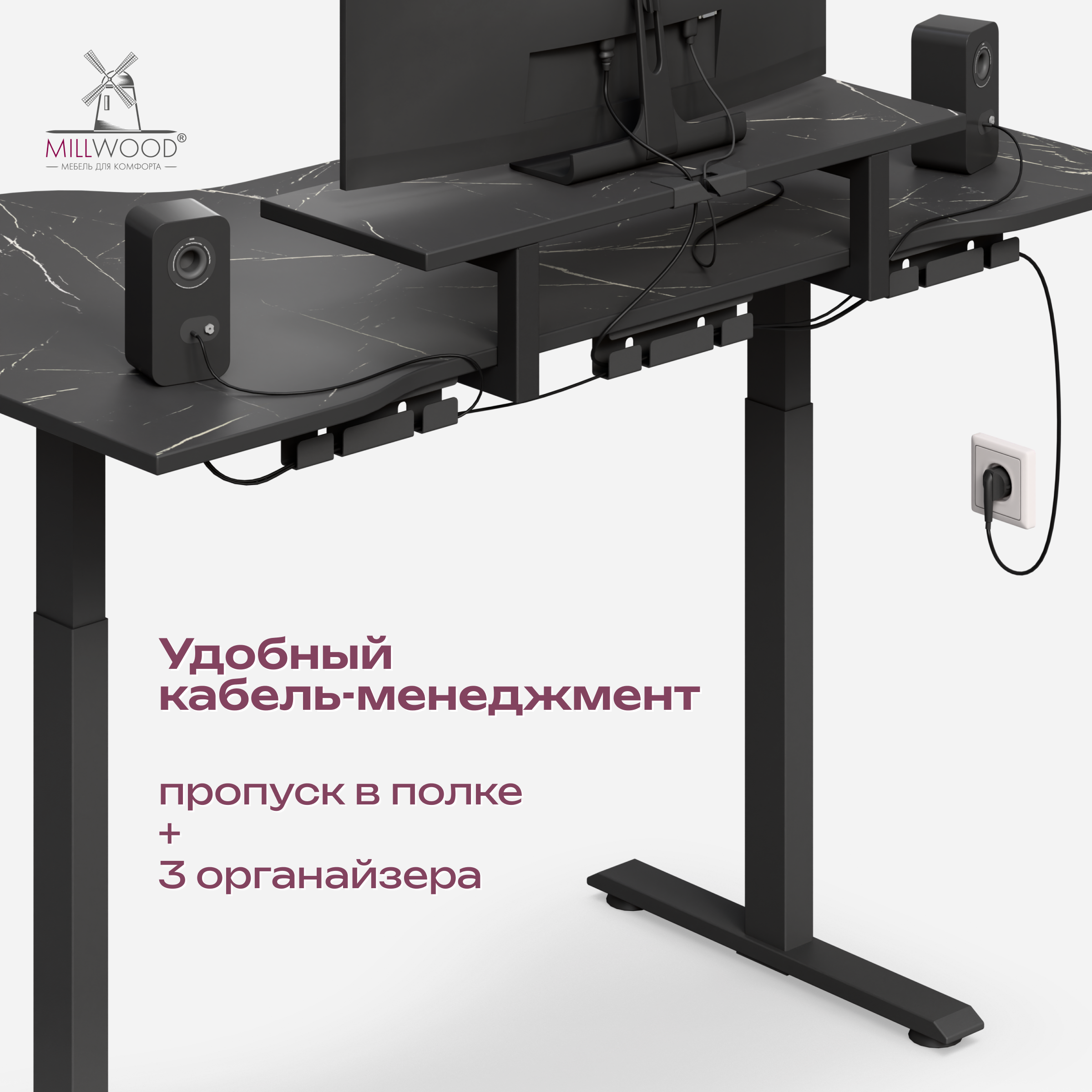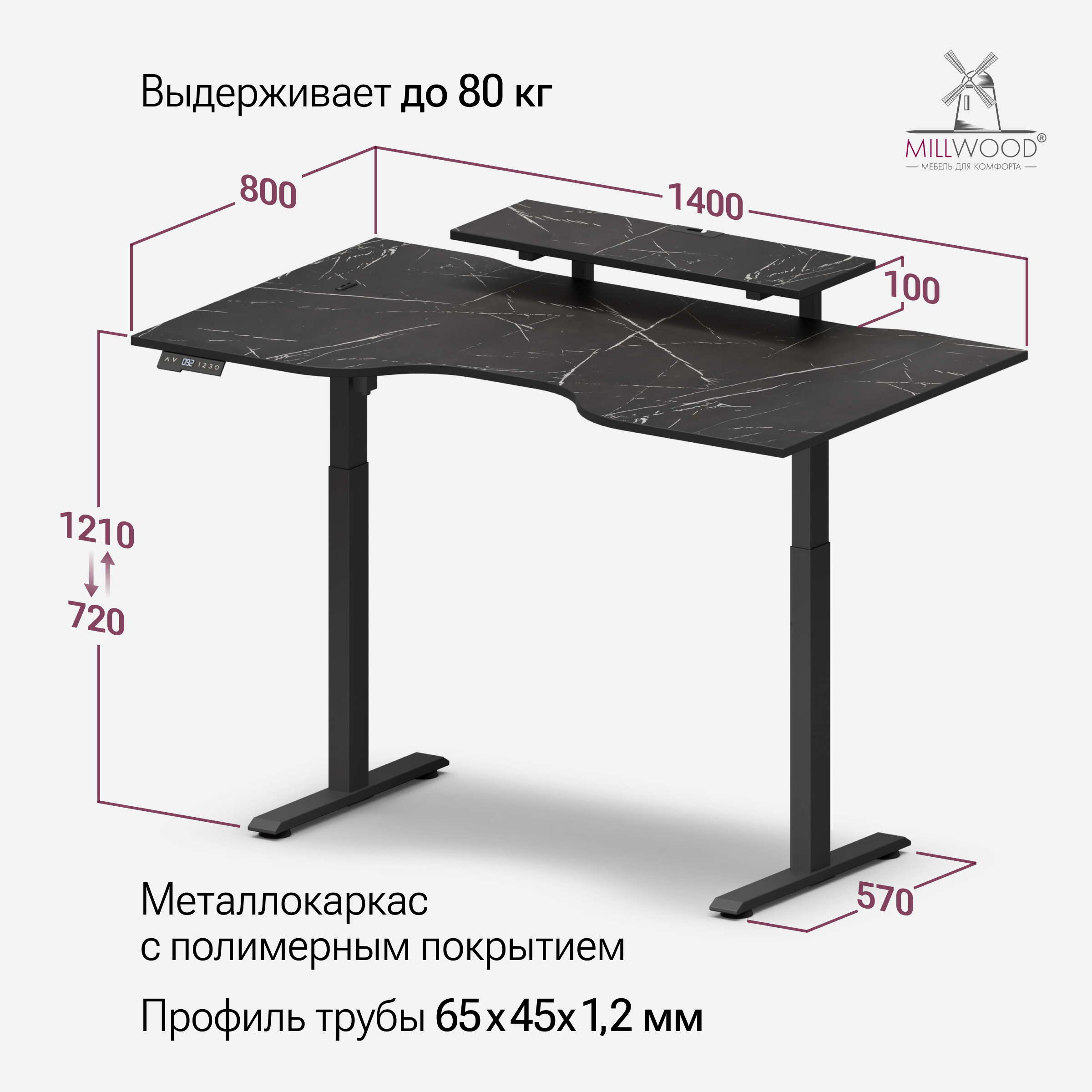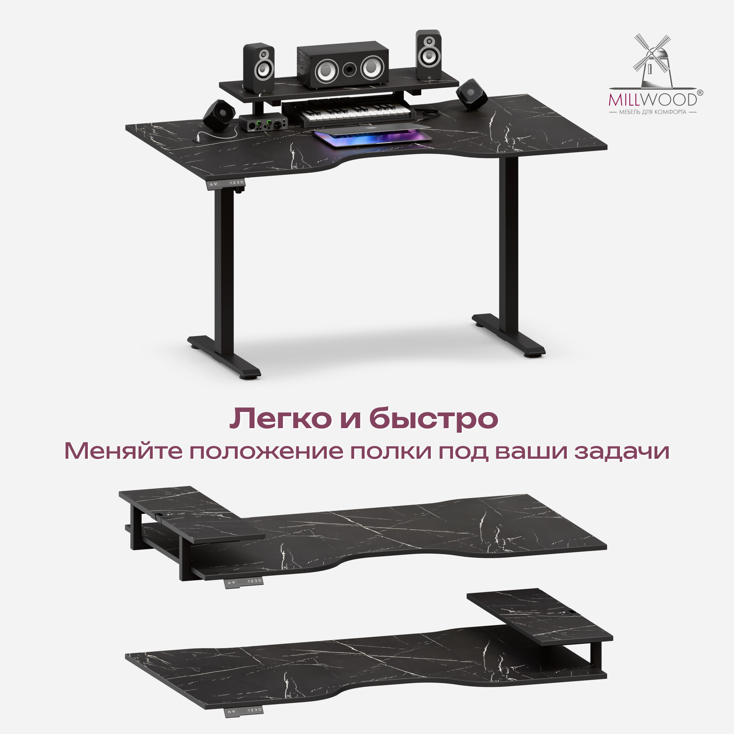 ◾ Электропривод с плавным и тихим подъёмом (<50 dB) меняет высоту со скоростью 25 мм/с.