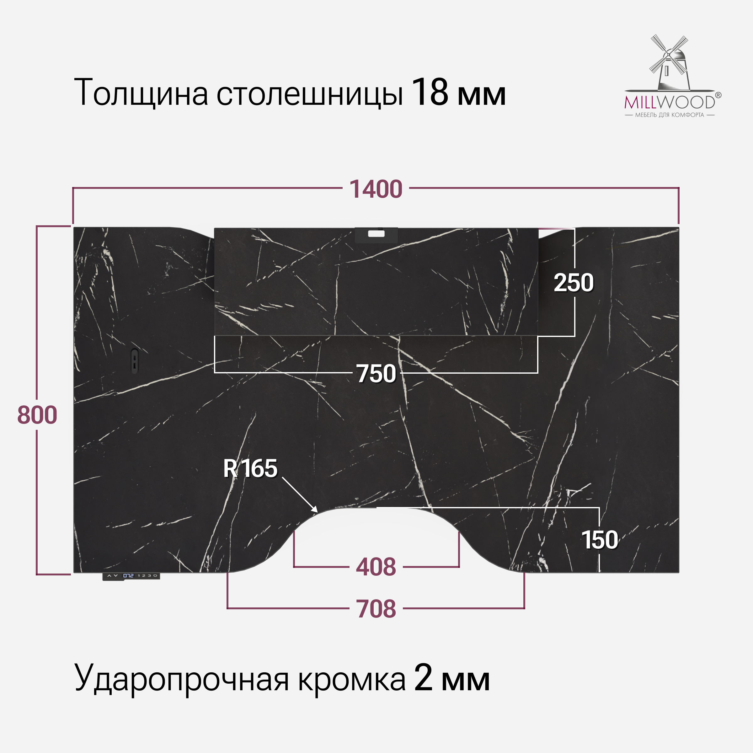 ◾ Столешница с усиленной кромкой 2 мм — защита от сколов и повреждений.