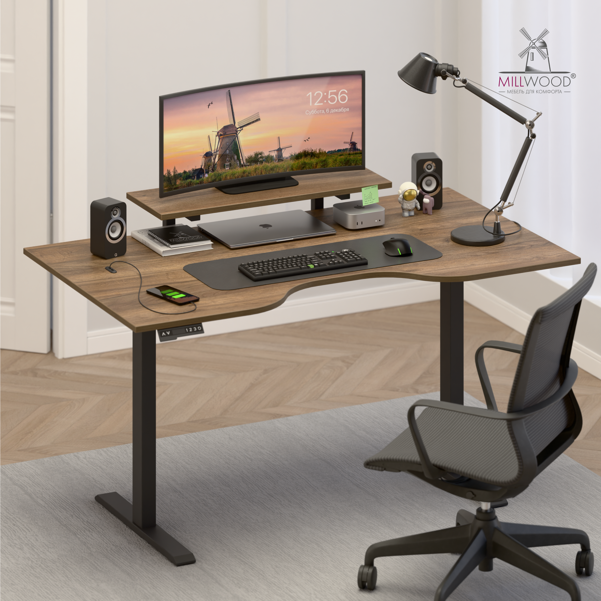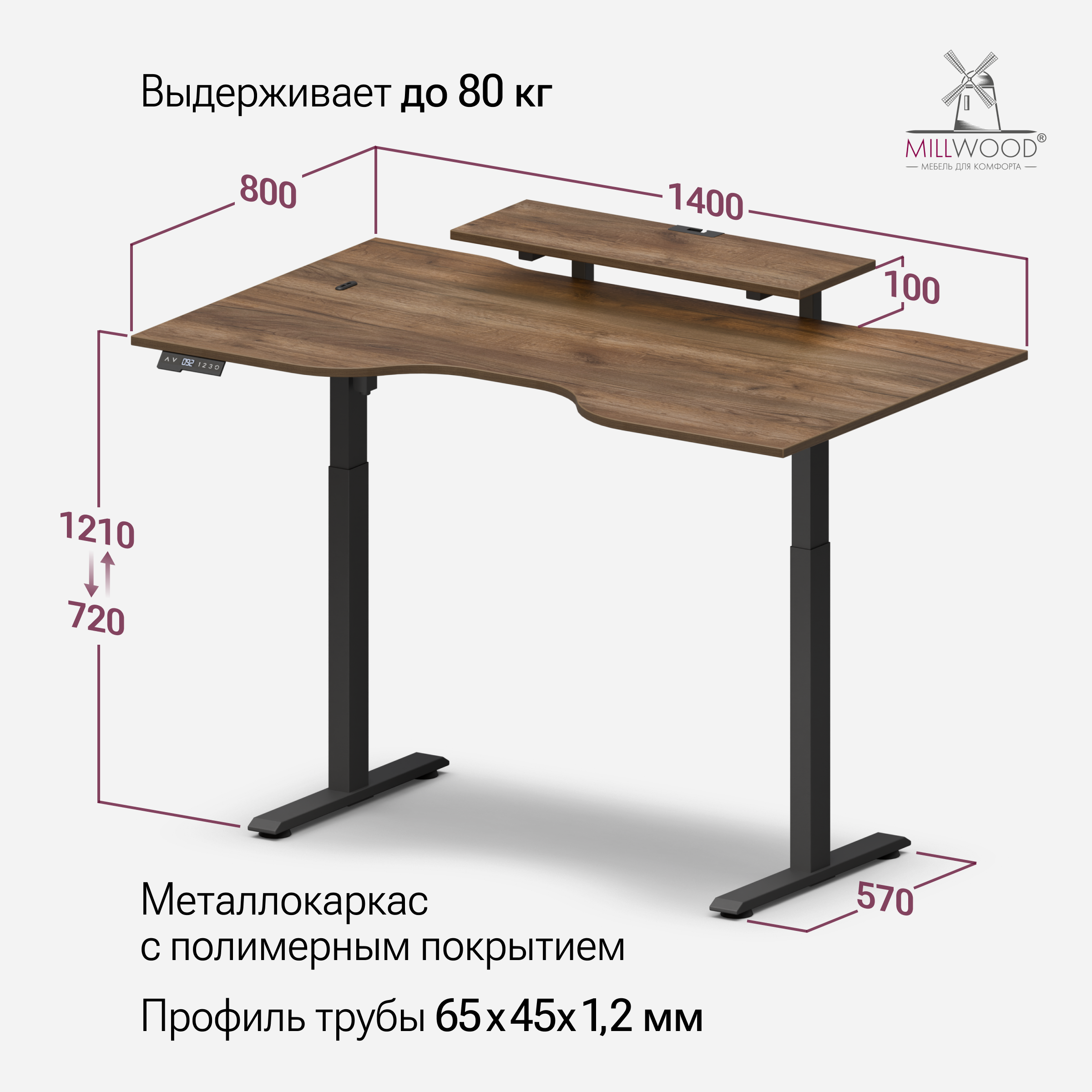 ◾ Электропривод с плавным и тихим подъёмом (<50 dB) меняет высоту со скоростью 25 мм/с.