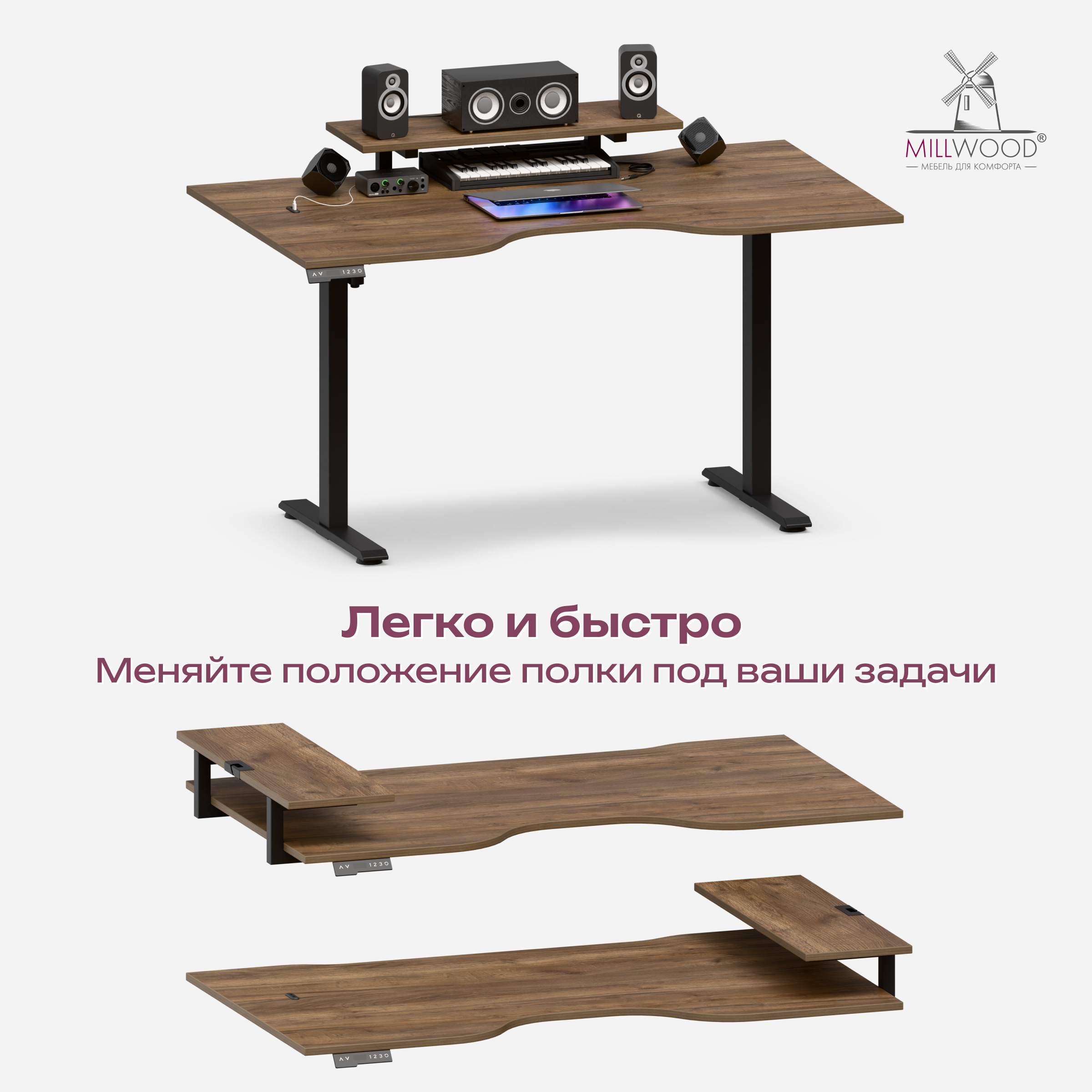 Это не просто стол — это ваш центр комфорта и эффективности. Регулируемая высота, эргономичный вырез и удобная подставка для монитора помогут сохранить здоровье и порядок на рабочем месте. Работайте сидя или стоя — создайте идеальное пространство для продуктивности и вдохновения.