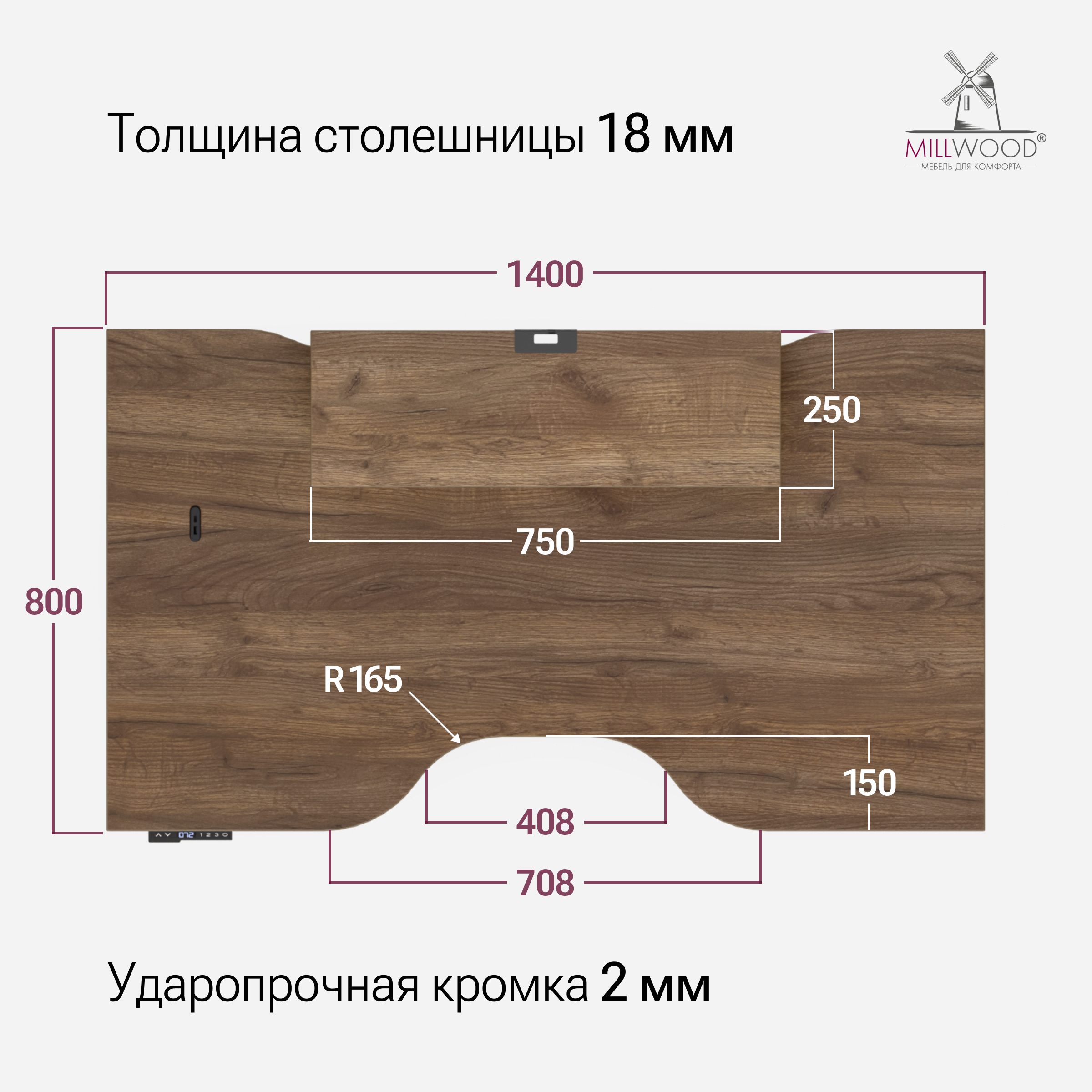 ◾ Столешница с усиленной кромкой 2 мм — защита от сколов и повреждений.