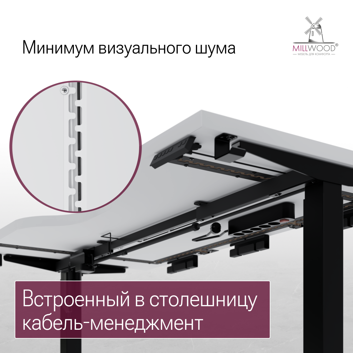 Вы сможете работать сидя, начиная с минимальной высоты 75 см, или стоя, подняв стол до 120 см — это идеальное решение для тех, кто заботится о своем здоровье и предпочитает динамичную работу.