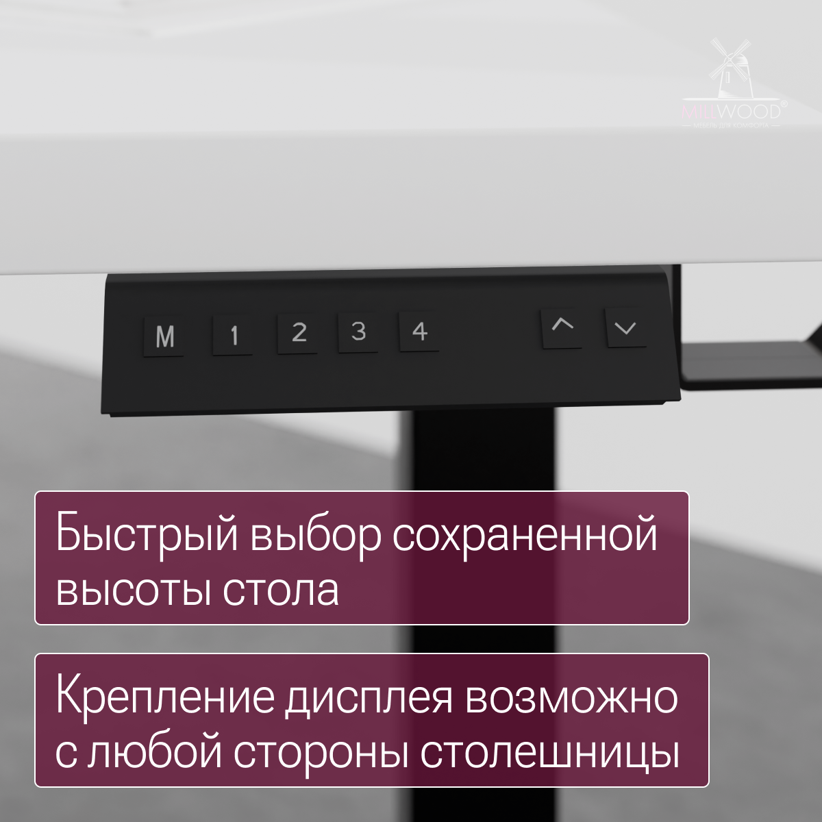 ◾ Подъёмный механизм стола работает от простого нажатия кнопки и поднимается со скоростью 20 мм/с, что позволяет легко менять положение стола. Стол имеет четыре кнопки памяти, позволяющие сохранить нужную высоту. Одним нажатием вы сможете установить стол на заданный уровень.