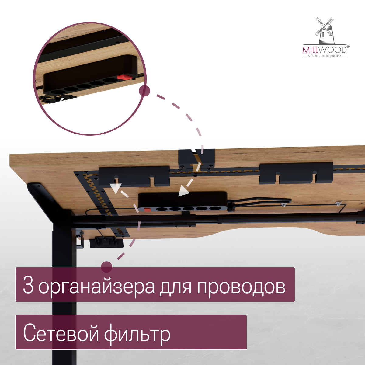 ◾ Два пропуска для проводов — позволяют незаметно провести провода через столешницу, сохраняя рабочее пространство свободным.