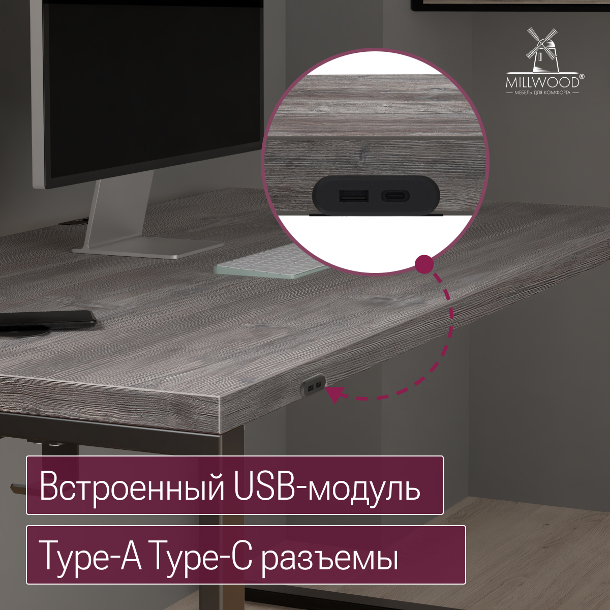 Одной из главных особенностей стола является встроенная станция беспроводной зарядки, благодаря которой можно легко заряжать смартфоны и другие устройства без лишних проводов. Кроме того, на столе расположены два USB-разъема с подсветкой для дополнительной зарядки гаджетов.