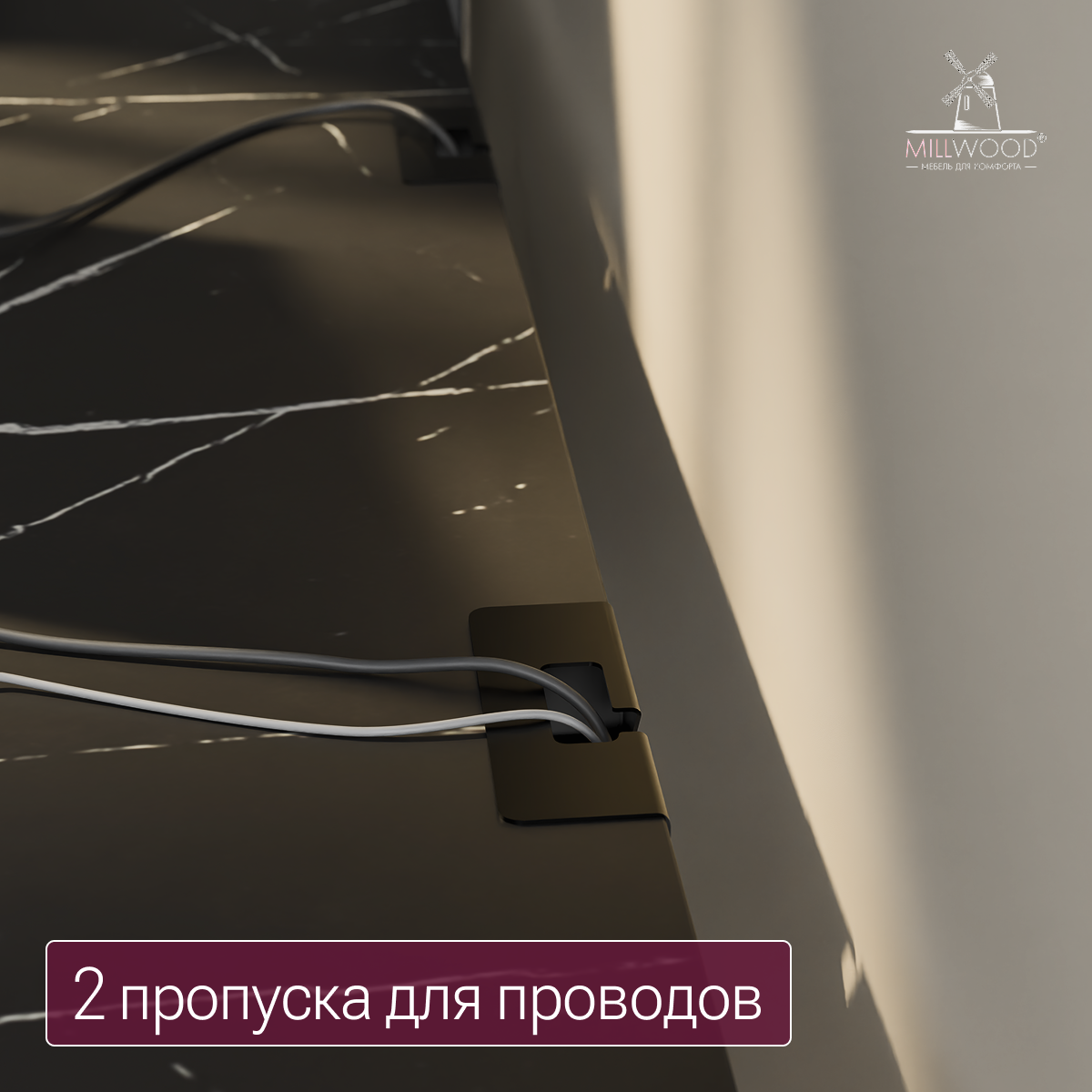 - ✔️ Два пропуска для проводов — аккуратная организация кабелей прямо через столешницу.