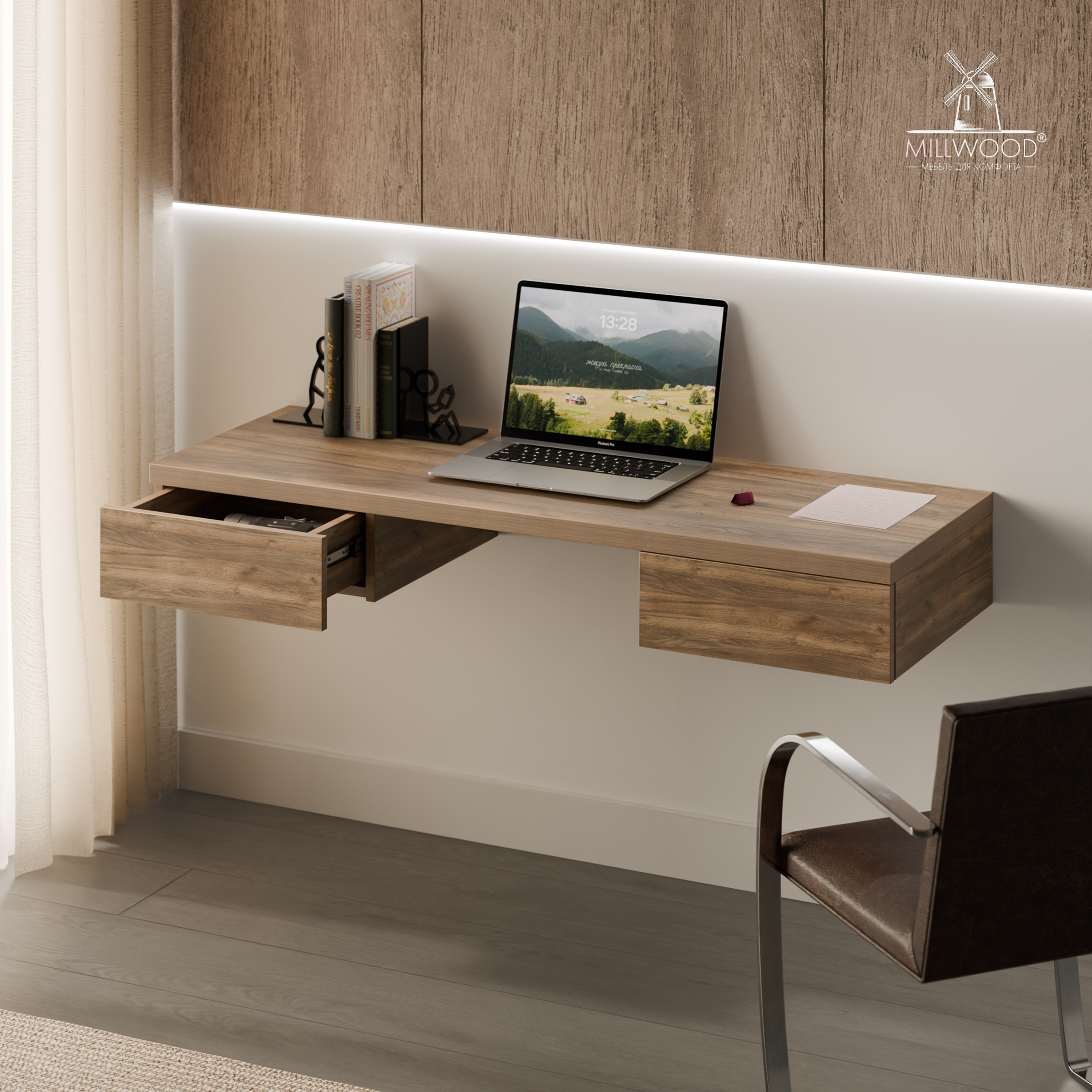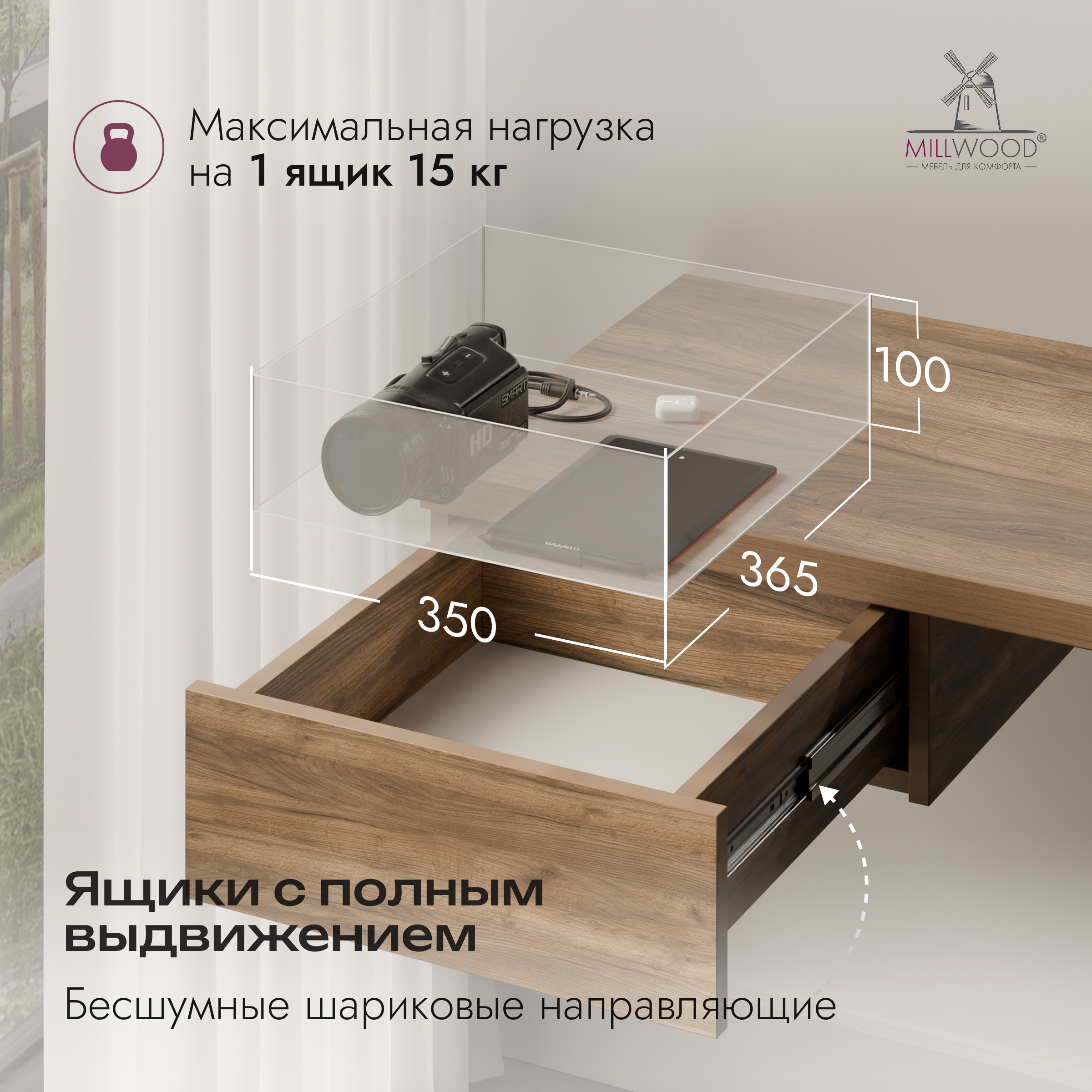 Подвесной стол-консоль Millwood «Берген» с выдвижными ящиками — минимализм и функциональность в «парящем» дизайне.