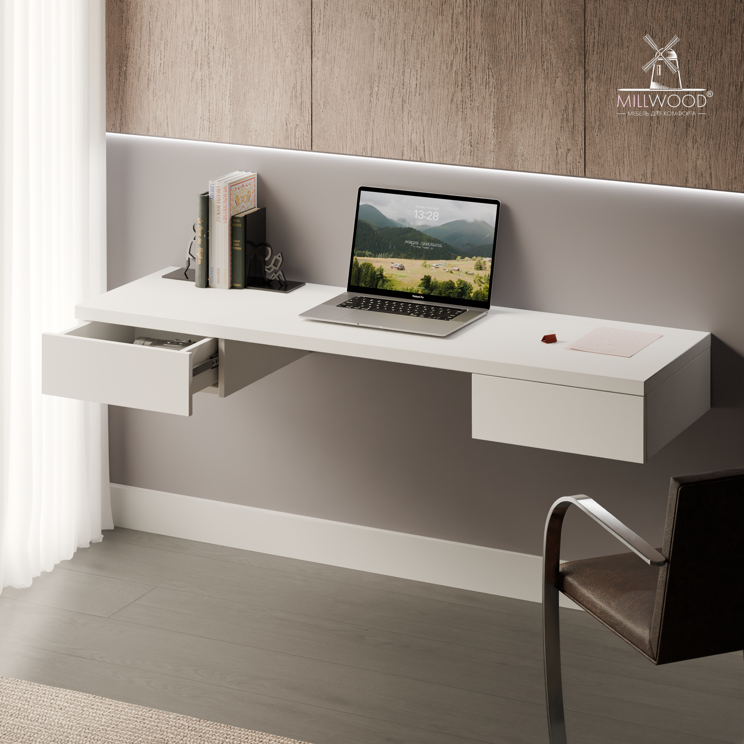 Подвесной стол-консоль Millwood «Берген» с выдвижными ящиками — минимализм и функциональность в «парящем» дизайне.