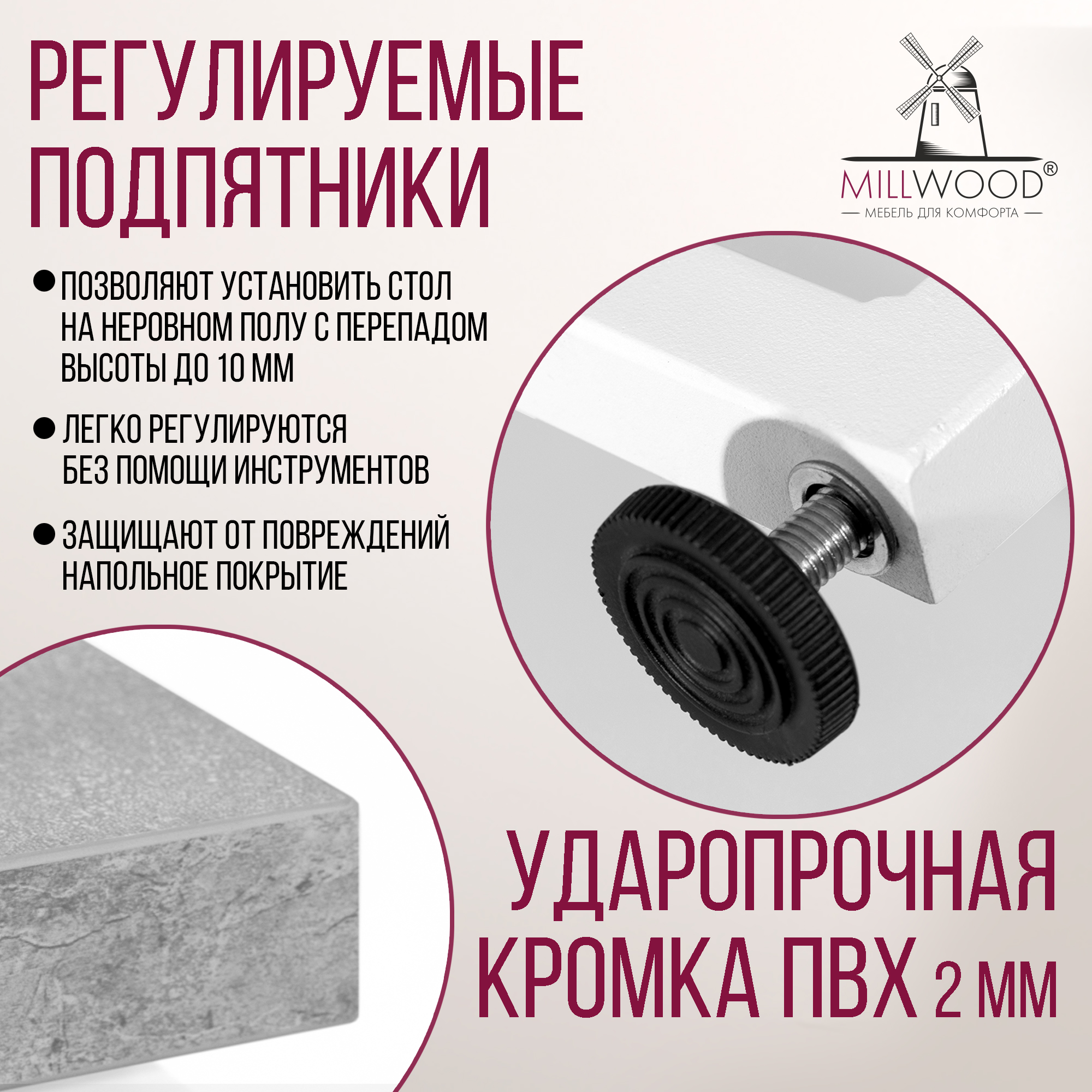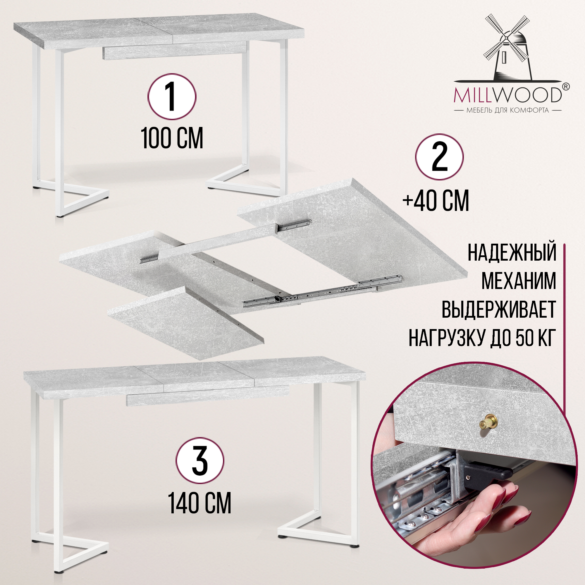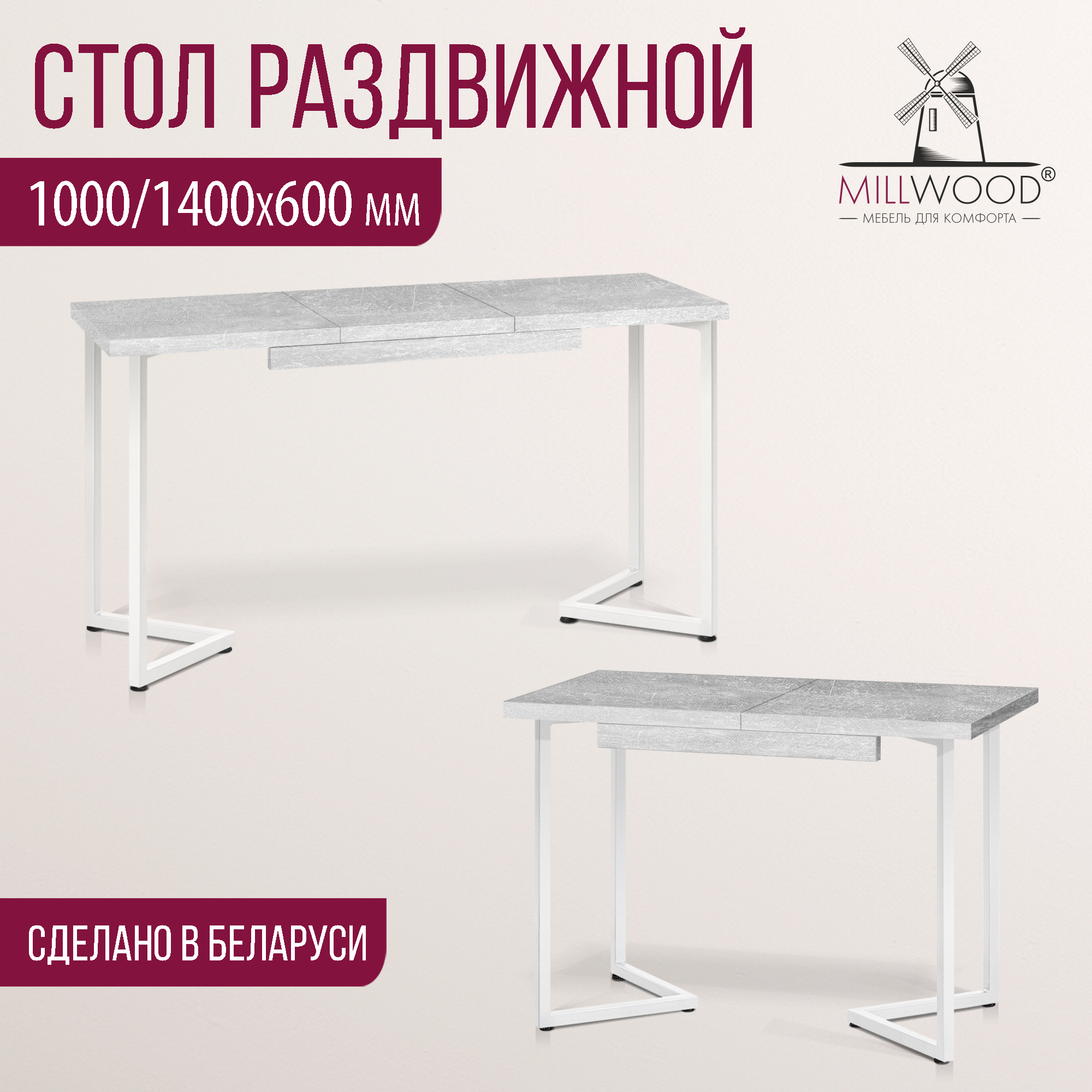 Прямоугольная столешница доступна в трех вариантах размеров: 100х60 см, 110х70 см и 120х80 см. Толщина столешницы 36 мм, выполнена из ЛДСП, материал обеспечивает превосходную прочность и устойчивость к повседневным воздействиям. Благодаря этому вы можете наслаждаться столом с должным уровнем комфорта, а элегантный внешний вид стола будет радовать вас долгие годы.