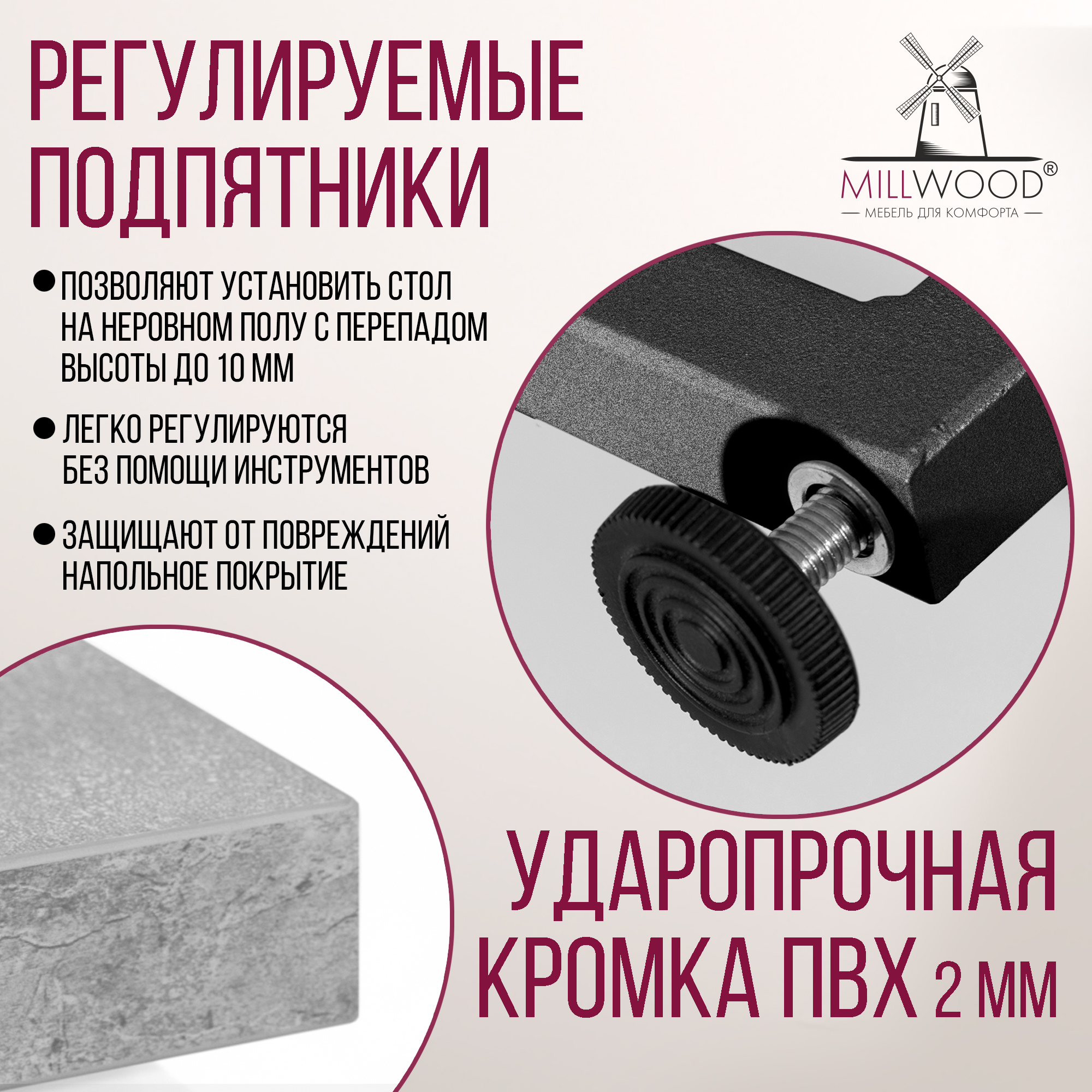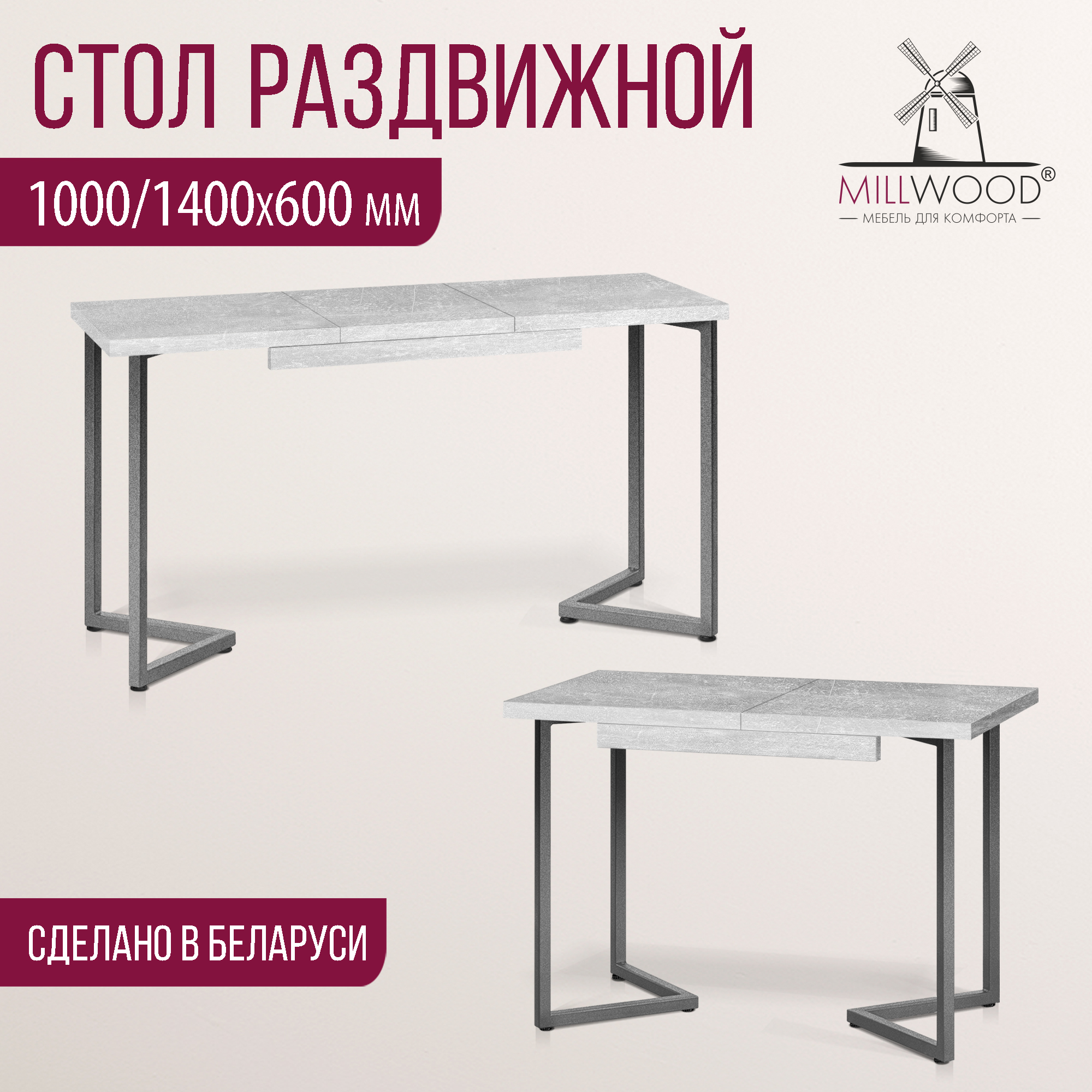Прямоугольная столешница доступна в трех вариантах размеров: 100х60 см, 110х70 см и 120х80 см. Толщина столешницы 36 мм, выполнена из ЛДСП, материал обеспечивает превосходную прочность и устойчивость к повседневным воздействиям. Благодаря этому вы можете наслаждаться столом с должным уровнем комфорта, а элегантный внешний вид стола будет радовать вас долгие годы.