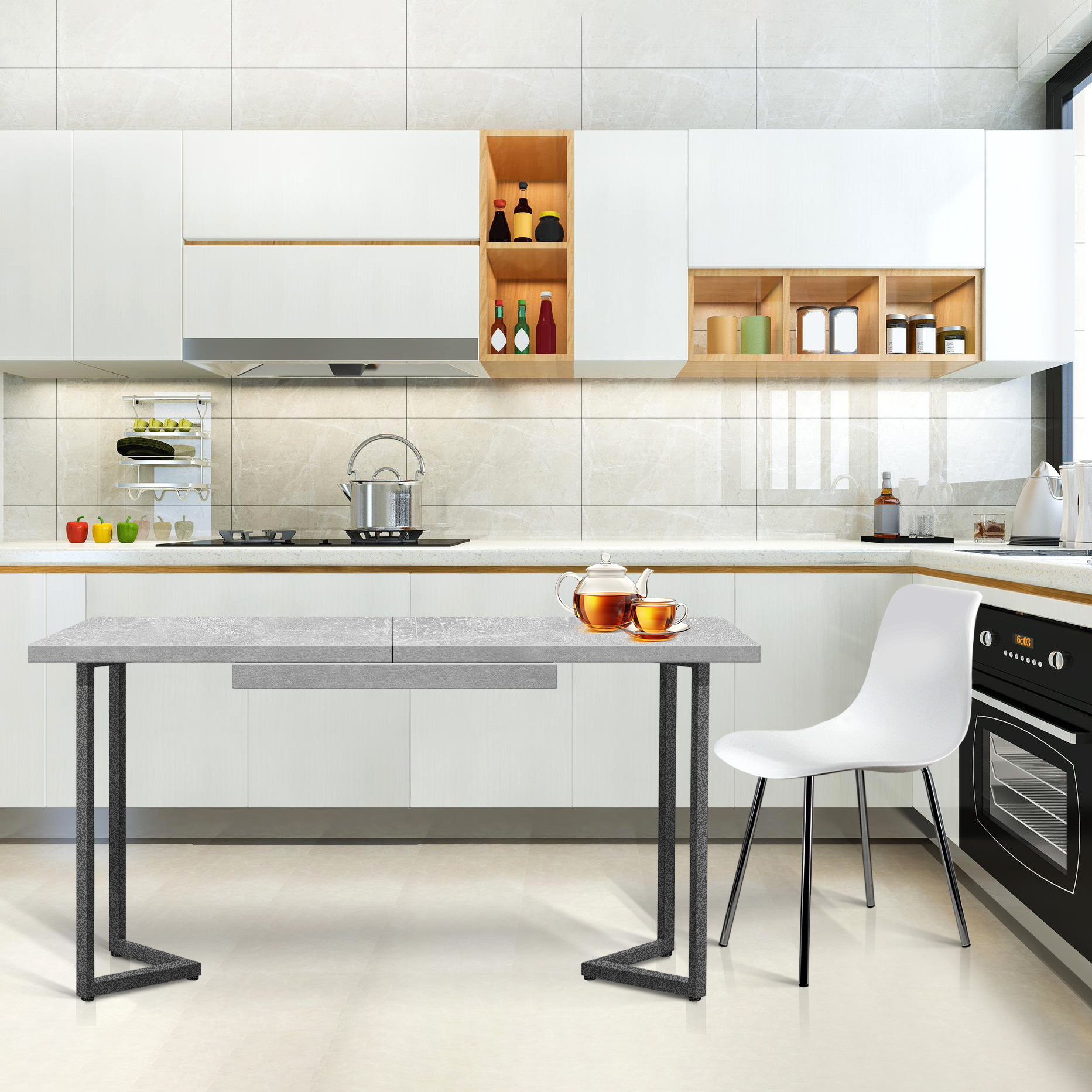 опоры стола, созданные из металлокаркаса, покрытого прочным полимером, не только являются надежной основой, но и привлекают внимание своей уникальной формой. Этот дизайнерский акцент добавляет столу особую изящность и шарм.