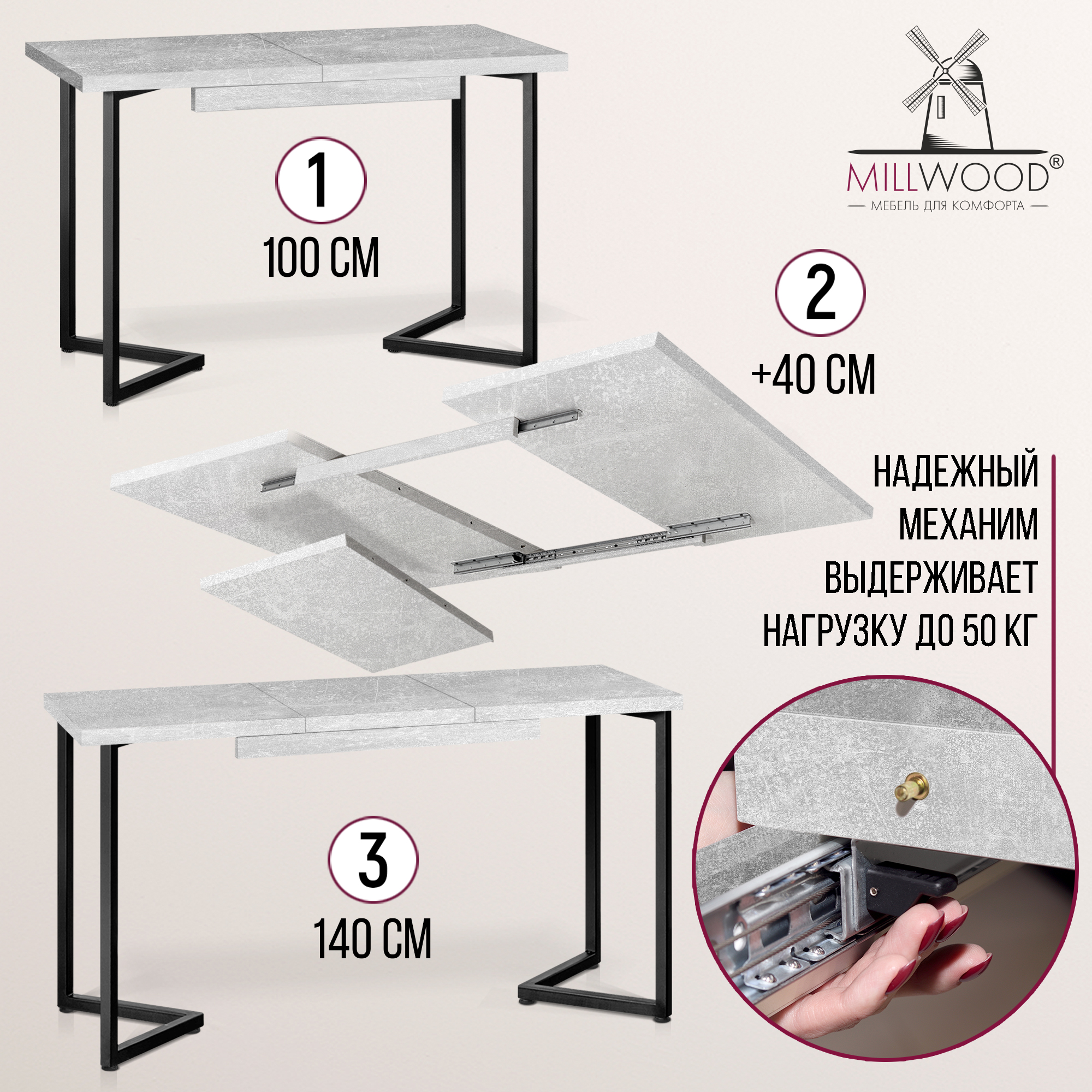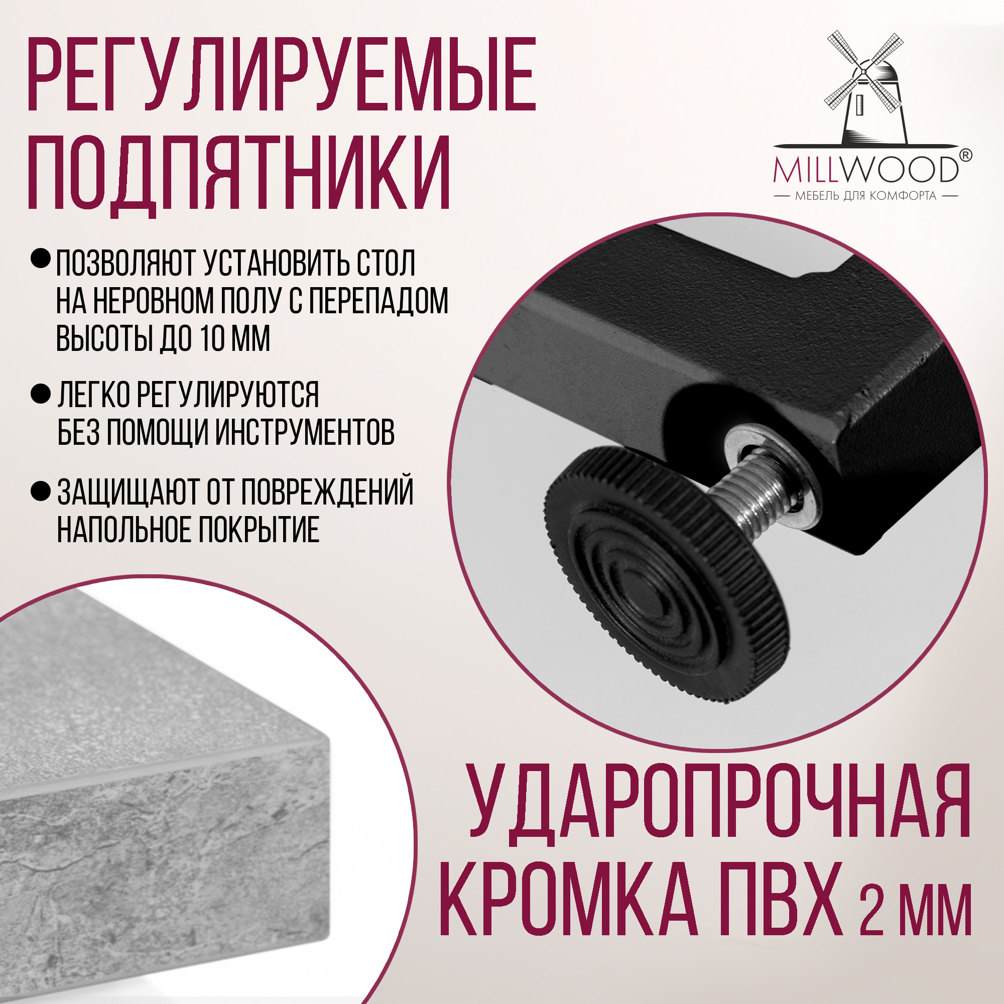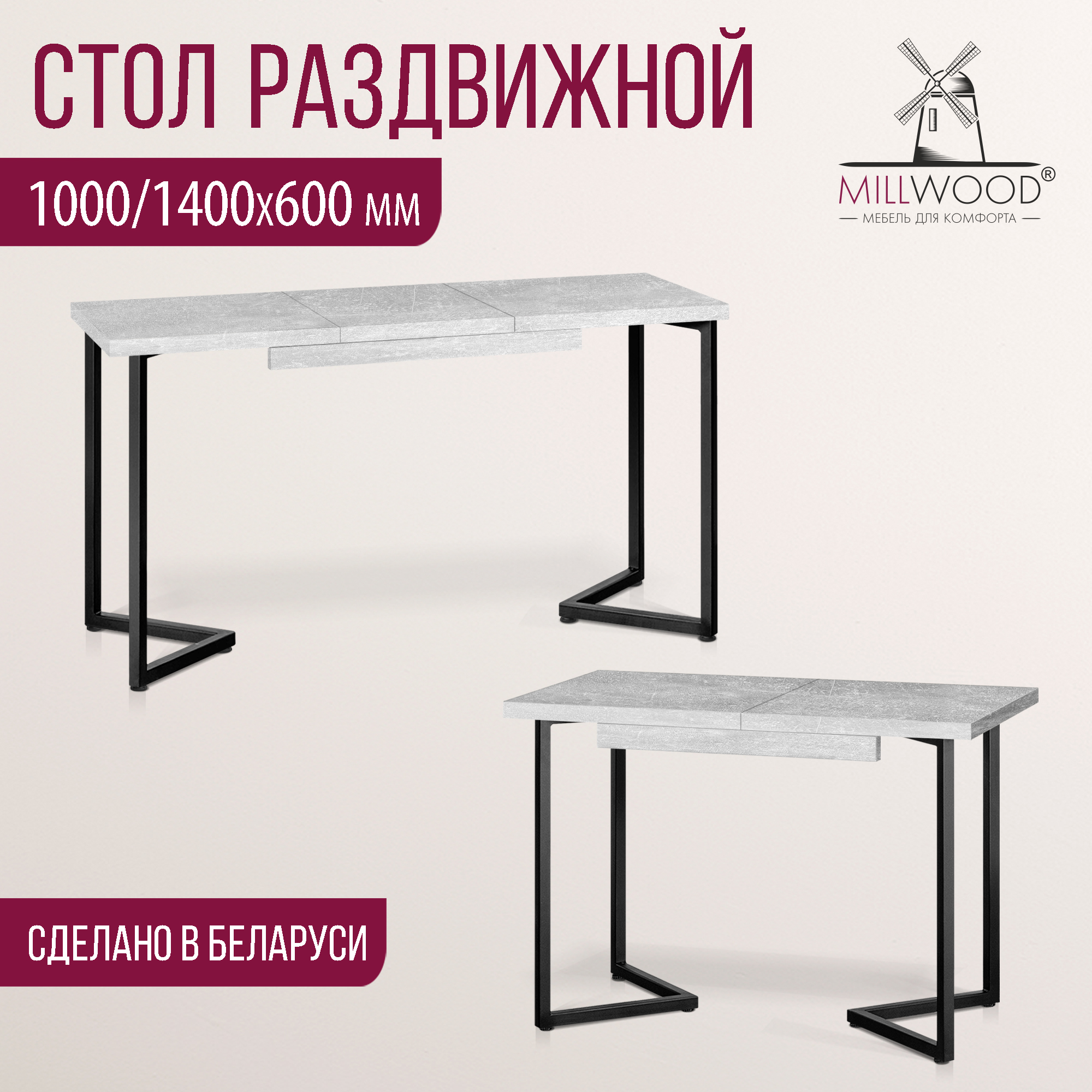 Прямоугольная столешница доступна в трех вариантах размеров: 100х60 см, 110х70 см и 120х80 см. Толщина столешницы 36 мм, выполнена из ЛДСП, материал обеспечивает превосходную прочность и устойчивость к повседневным воздействиям. Благодаря этому вы можете наслаждаться столом с должным уровнем комфорта, а элегантный внешний вид стола будет радовать вас долгие годы.