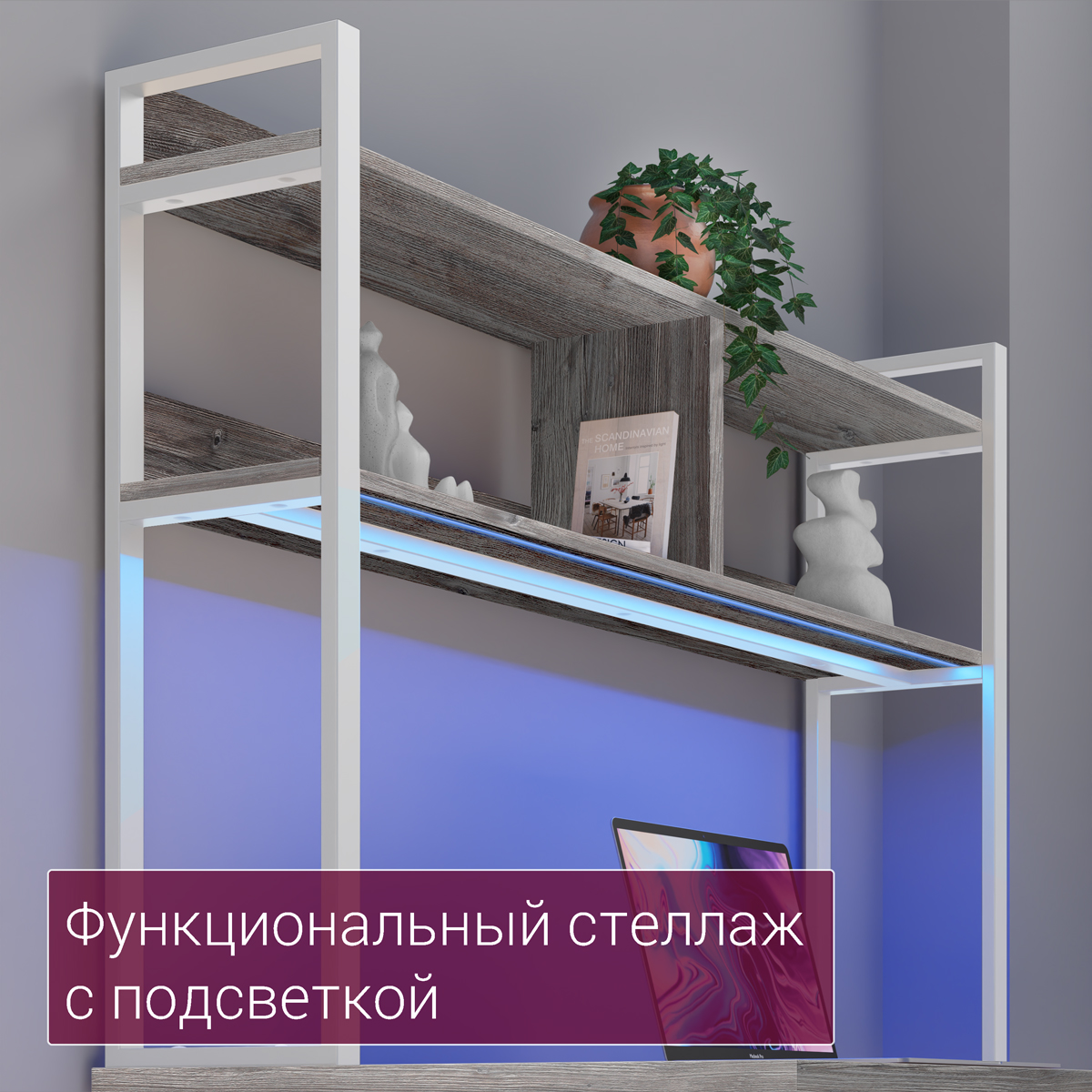 ◾ Стеллаж обеспечивает хранение книг, документов, техники и аксессуаров, освобождая рабочую поверхность.